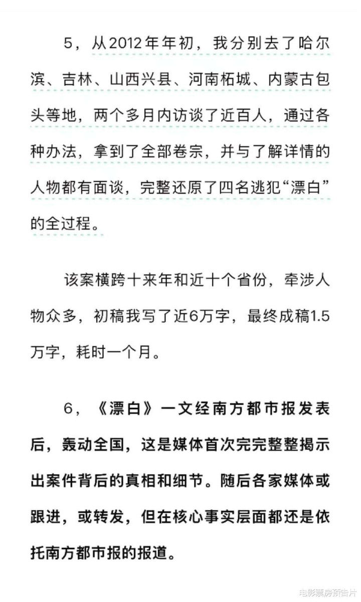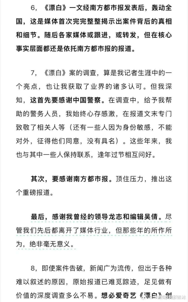《漂白》经南方都市报发表后,引发轰动,众多媒体跟进转发报道,其核心事实均依托自他写的这篇深度报道。