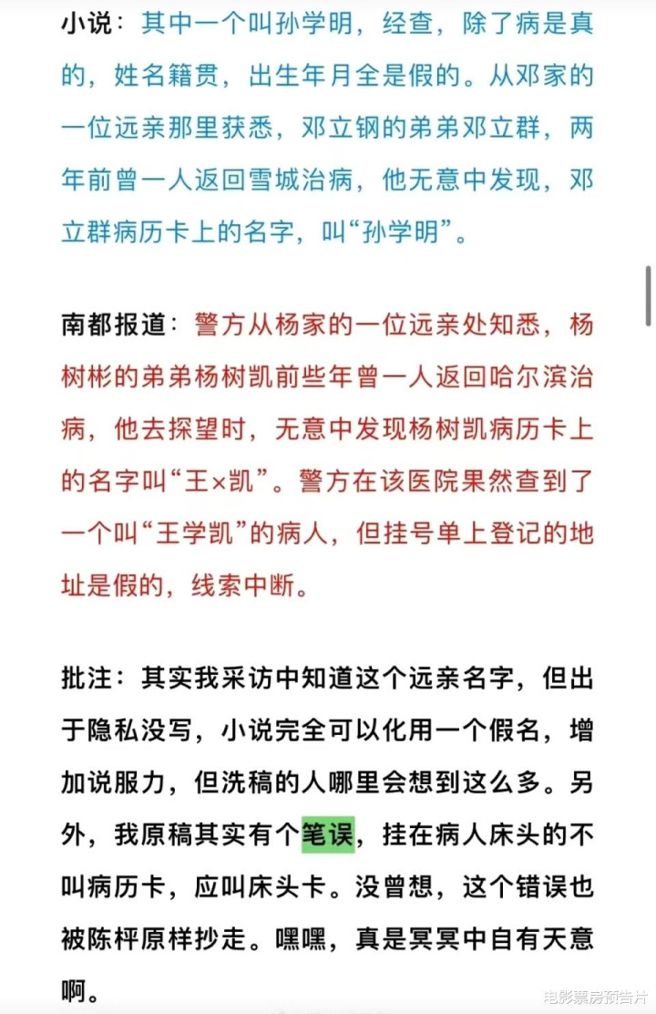 有的甚至把原稿中的笔误,都直接抄袭到他的小说当中。如挂在病人床头的不叫病历卡,应叫床头卡,直接被陈枰抄了过去。