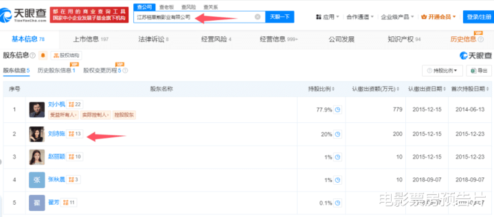 2015年,刘诗诗与吴奇隆关系确定后,吴奇隆便送给了刘诗诗20%的股份,自此刘小枫和刘诗诗便成为了公司二把手。