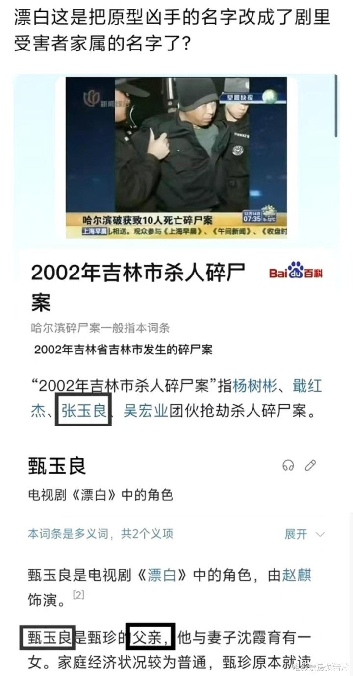 甚至还把凶手的名字搞成了受害者家属的名字,如原型凶手张玉良,在小说中,甄珍的父亲叫甄玉良。
